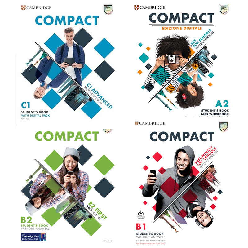 Compact by Cambridge University Press & Assessment is a fast‑track, exam‑focused English preparation series, each course (Quick PET, First, or Advanced) philtreing out unnecessary content to deliver a 50–60‑hour crash-prep programme—ideal for intensive revision or as a final-stage booster before test day . It features a one-exam‑part‑per‑unit structure, with eight tightly structured modules guiding learners through Reading, Writing, Listening and Speaking papers step-by-step, supported by explicit exam tips in contextual “Exam Strategy” sections . The grammar syllabus includes specialist “exam grammar” segments plus a built-in reference section, while frequent Vocabulary & Grammar reviews, Speaking and Writing banks, and expert error correction tasks—informed by real candidate performance via the Cambridge Learner Corpus—ensure higher accuracy and deeper learner awareness . For teachers, Compact’s streamlined design saves prep time without compromising substance, offering a precise course that delivers maximised exam performance through guided practice and targeted confidence-building strategies.